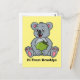 Cute koala and coconut cartoon illustration postcard