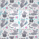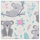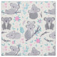 This adorable fabric features a variety of cute gray koala bear images in various poses. Along with the bear images are pink flowers and teal leaves. The images are placed on a white background. Cute for kids and adults!