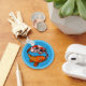 Two cute koi carp on a keychain. One is gold, one tricolor. The pair are swimming in a circle like a Yin Yang symbol, on a blue background. My version of a traditional theme often used in tattoo designs.