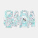 A cute kokeshi doll in a dusky pink turquoise kimono with dusky pink cherry blossoms and a bokeh turquoise background. Customise it with a name.