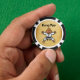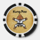 A humorous black-belt karate master, with a poo emoji as head, in a fighting stance. Text reading, "Kung Poo" appears above the image. Everything is superimposed on an old paper background image. Customise by adding the chip value, or other additional text, on the reverse side.