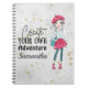 This spiral photo notebook features a cute woman with the text "Create Your Own Adventure" but you can change the word "adventure" to fit what you want. This can be personalised with your name in elegant calligraphy. It has a sparkly grey background. It is perfect for women who love leggings and comfortable casual clothes.