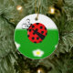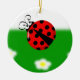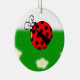 Cute cartoon ladybird (ladybug) ornament with grass and flowers in the background.