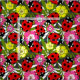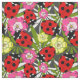 Cute Ladybirds and Flowers Pattern on Grey Fabric