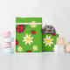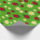 cute ladybug and daisy flower pattern green wrapping paper