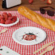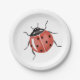 White and Black Baby Shower Paper Plates featuring a red ladybug in watercolor.