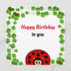 Cute happy ladybug surrounded by good luck four leaf clovers Birthday Card. Ideal for everyone. Lady bug is a universal symbol of good fortune! Great for kids and adults!
