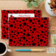 These cute birthday envelope feature a cute ladybug and trendy typography on a black and red polka dots background.