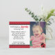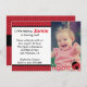 Cute little ladybug and flowers invitation that is great for a girl's second birthday. Striking black and red polka dots pattern as border. Design includes available space on the right for adding the child's photograph. For best results, switch to customisation mode and use the arrow keys to position the photo. Personalise easily with your party details.