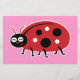 This cute red and black ladybug illustration features an adorable retro cartoon lady bug with red, black and white polka dot spots on her back and a huge smile! This smiling cheery insect art is the perfect gift to buy for ladybug lovers, kids and anyone who loves sweet original art!