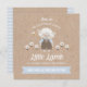 A cute blue and kraft boy baby shower invitation featuring a boy lamb and flowers. Simple stripe pattern and lamb decorates the back of the invitation with the date, time, place and other information.. Personalise it for your boy baby shower. Designed for you by blackberry Boulevard.