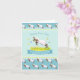 Spring lamb skipping cute Easter greeting card. Cute Easter card featuring cute a watercolor painting of a whimsical lamb skipping in a flower meadow with butterflies, your own name choice in the graphic ribbon and sheep pattern inside next to your own personalized a message. Cute lamb on a teal aqua sky background ideal for a farm-themed Easter. Other cute sheep matching items available. © Uniquely painted in watercolor and designed by Sarah Trett for www.mylittleeden.com