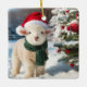 Cute lamb with a scarf and a Santa hat Ceramic Ornament