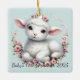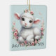 Cute Lamb with Floral Crown Illustration Ceramic Ornament