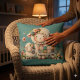 I LOVE this pillow! It sleeps with me every night; and yes, it gets and gives lots of hugs. I know I said it would be good for a Baby Shower up there, but it's good for little old ladies too! But I can truly see a child growing up with it and having a friend for life. It would get passed down from generation to generation. Truly a classic! This pillow is HUGE! I took a picture of it propped up in front of four queen-size pillows, and it covered them all. The artwork was even more beautiful than the photo indicates, both front and back. I was also surprised to find that these pillows are made by single mothers living in poverty, under the auspices of AMERICAN MOJO: Helping America Gets Its Mojo Back. That delighted me and made me love the pillow even more.