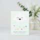 NewParkLane - Cute gender neutral, personalised kids' birthday postcard with a laughing cloud with a rainbow coloured stars, against a soft green striped background, and a text template for your child's name.