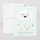 Cute Laughing Cloud - Green Striped Kids Birthday Postcard