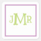 Cute Lavender & Green Monogram Initials square Sticker