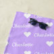 Lilac/Lavender Personalised Name and Heart Cute in a Repeating Pattern Beach Towel or Large Bath Towel. Perfect as a gift for children or friends or for yourself which you can bring to your summer vacation or trip.