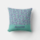 Cute throw pillow featuring a lavender pattern with watercolor flowers and a name, all set against a light teal background. This adorable pillow showcases a delicate lavender floral design rendered in a watercolor style, complemented by a personalised name detail. The light teal backdrop enhances the overall charm of this decorative throw pillow.