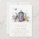 Cute Leafy Rose Floral Teapot Engagement Invite