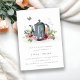 Cute Leafy Rose Floral Teapot Wedding Invite