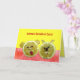 Two funny lemons for you to personalise the text. A lemon card that is TONGUE and ...cheek. Reads: "Lemon Greeting Curd", and inside: "No Whey!" (The tongue is made of flower petals, the eyes and nose are beans) When life makes you a lemon, it means you'll get LeMONEY.