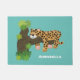Cute leopard sleeping in tree cartoon illustration doormat