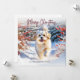 Cute Lhasa Apso Dog In Snow Merry Christmas Holiday Card