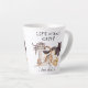 Here's a cute latte mug for any cat lover. It features four funny lounging cats in various colors and types, with the text above and below that says "LIFE without CATS? I don't think so". The image and text are printed on two sides.