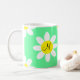 This adorable mug features white flowers with a soothing light green background. Single initials for personalisation can be placed in the centre of a flower on front and back. It's a sweet and happy cup to use for beverages.