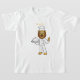 100% cotton so perfect for summer, It is a nicely designed t-shirt, the fabric is soft and the seams finished well, the body of the t shirt has no side seams. I bought a medium size for my two grandsons, aged 9 and 8 it will be slightly big on them but I would rather that than too small