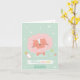 Cute welcome little baby card with pink lion, stars, baby bottle, diaper pins on mint dot pattern
