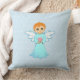 Little angel dressed in turquoise on a starry light blue background Throw Pillow. Angel decorative pillows!