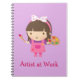 A cute design for the little artist! It features a cute little girl in a pink apron who is holding on to a colour palette and paintbrush. The text reads "Artist at work" which you can personalise with child's name. Perfect for little girls who love to paint and the arts.