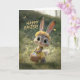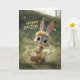 This adorable Easter card features a bright-eyed baby bunny in a yellow dress, wearing a daisy flower crown and carrying a basket of colorful eggs. Surrounded by soft spring greenery and fluttering butterflies, the artwork has a warm, whimsical storybook charm perfect for celebrating the season. Ideal for kids, families, and anyone who loves sweet, cheerful Easter designs. Printed on premium cardstock for a beautiful seasonal keepsake.