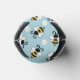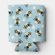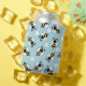 Seamless pattern with cute little flying bees and white daisy flowers decoration on light blue background