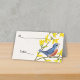 This folded standing place card for your parties, events, and weddings is white with a cute little red and blue bird who is singing sitting on a branch with pretty yellow flowers. Customise the name and table number area and text on the back with the templates.