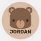 Cute Little Brown Bear with Personalised Name Classic Round Sticker