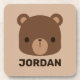 This design features cute little brown bear with personalised name in brown modern sans serif font style on light brown background.