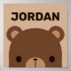 Cute Little Brown Bear with Personalised Name Poster