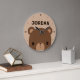Cute Little Brown Bear with Personalized Name Larg Large Clock