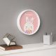 Cute Little Bunny Cartoon & Flowers For Girls Pink Clock
