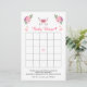 This enchanting designs Baby Shower Bingo Game card features "A Little Butterfly Is On The Way" themes cute pink ribbon butterflies with watercolor pink purple flowers and back side on pink gingham pattern. Customise this template with your own text and make it your own.