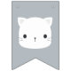 This design features cute little cat with title "Happy Birthday" in grey modern sans serif font style on light grey background.