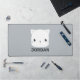 This design features cute little cat with personalised name in grey modern sans serif font style on light grey background.