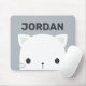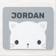This design features cute little cat with personalised name in grey modern sans serif font style on light grey background.