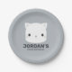 This design features cute little cat with personalised name in grey modern sans serif font style on light grey background.