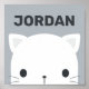 This design features cute little cat with personalised name in grey modern sans serif font style on light grey background.