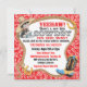 Yeehaw! Celebrate cowboy style with this super cute Cowboy Baby Shower party invitation with an vintage illustration of a cute little baby cowboy with a big hat, cowboy boot and fun typography against a red bandanna background.